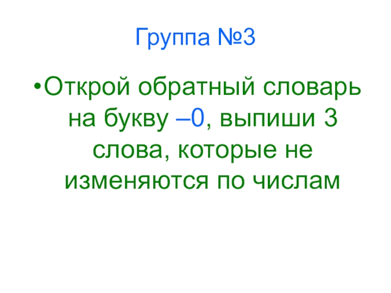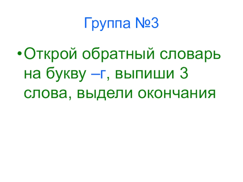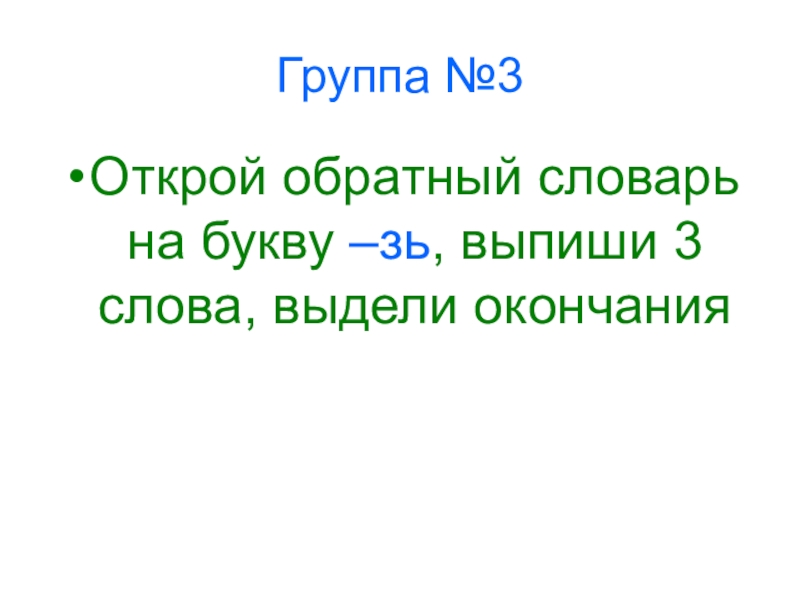 Группа №3Открой обратный словарь на букву –зь, выпиши 3 слова, выдели окончания