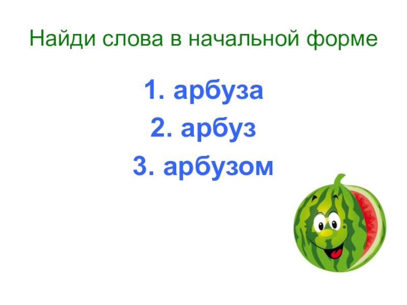 Найди слова в начальной форме1. арбуза2. арбуз3. арбузом