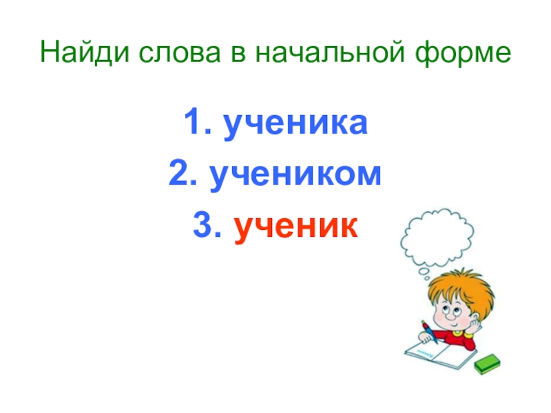 Найди слова в начальной форме1. ученика2. учеником3. ученик