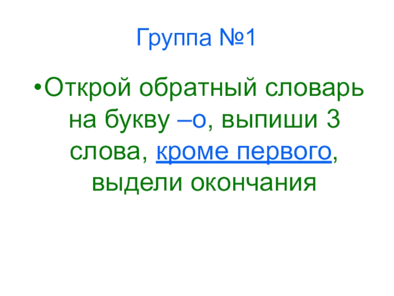 Группа №1Открой обратный словарь на букву –ба, выпиши 3 слова, выдели окончания