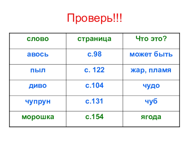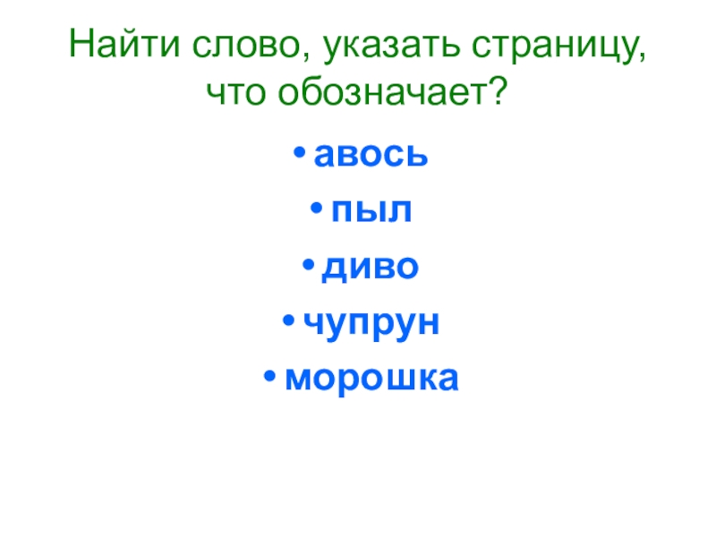 Найти слово, указать страницу, что обозначает?авосьпылдивочупрунморошка