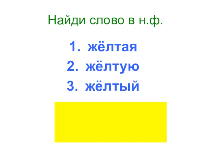 Найди слово в н.ф.жёлтаяжёлтуюжёлтый