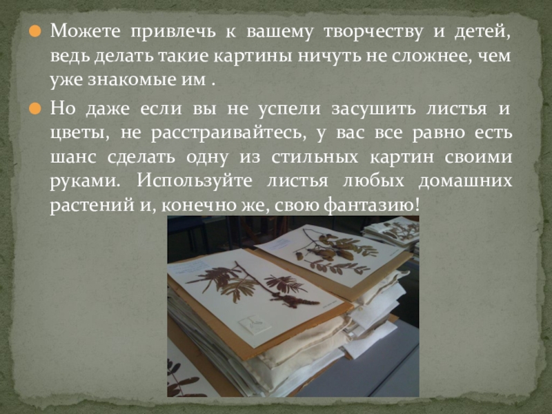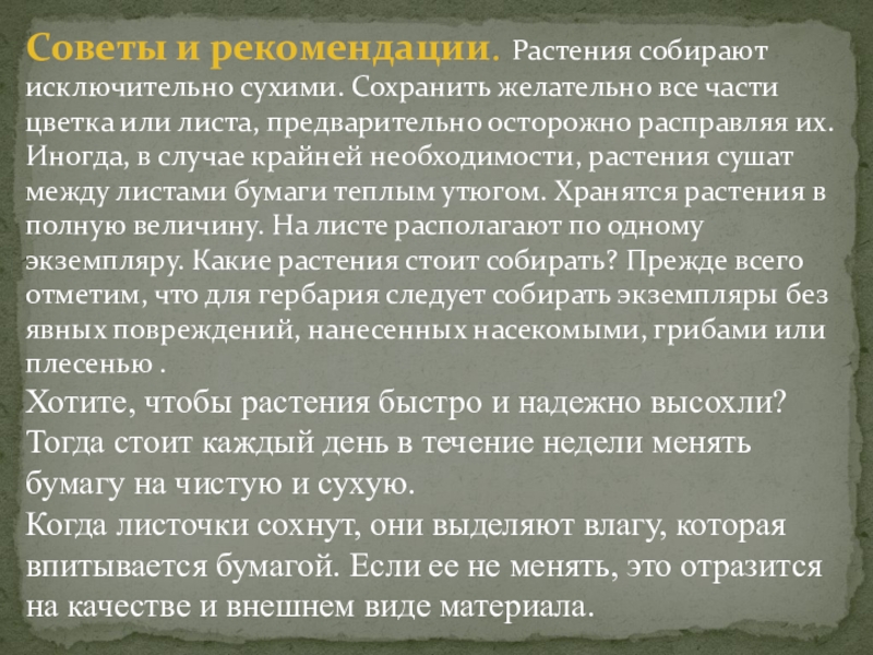 Когда листочки сохнут, они выделяют влагу, которая впитывается бумагой. Если ее не менять, это отразится на качестве и внешнем виде материала.