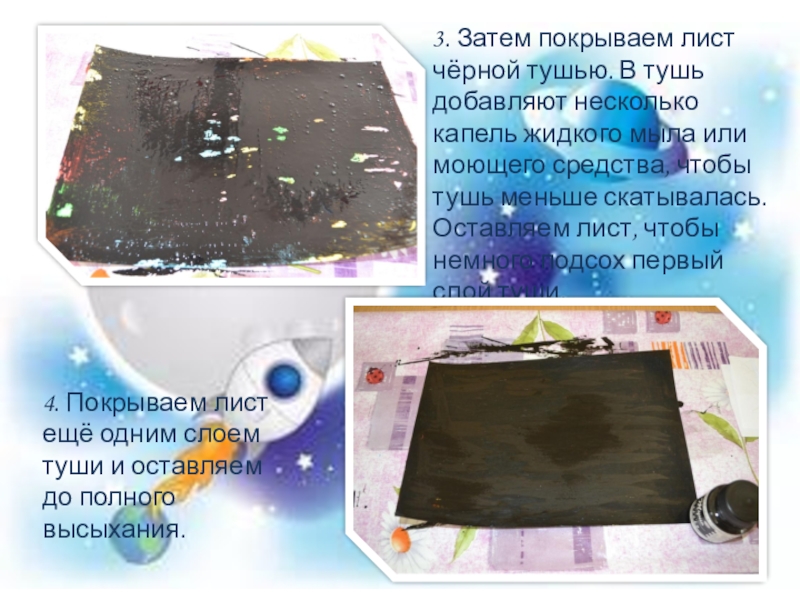 4. Покрываем лист ещё одним слоем туши и оставляем до полного высыхания.