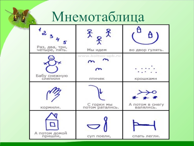 Мнемотаблицы особенно эффективны при разучивании стихотворений.