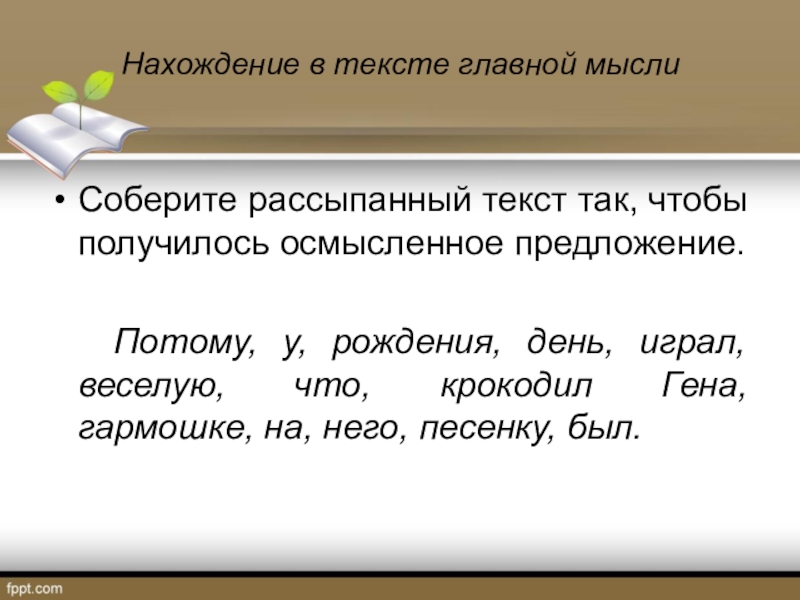 Потому, у, рождения, день, играл, веселую, что, крокодил Гена, гармошке, на, него, песенку, был.