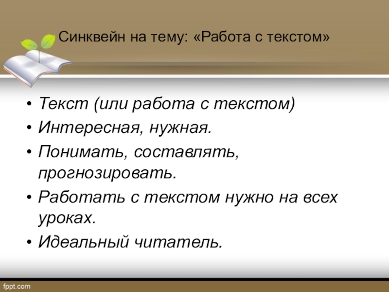 Слайд 20Синквейн на тему: «Работа с текстом»