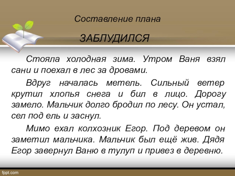 Стояла холодная зима. Утром Ваня взял сани и поехал в