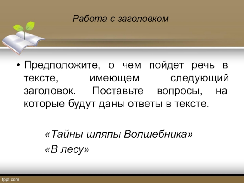 заголовок. Поставьте вопросы, на которые будут даны ответы в тексте.