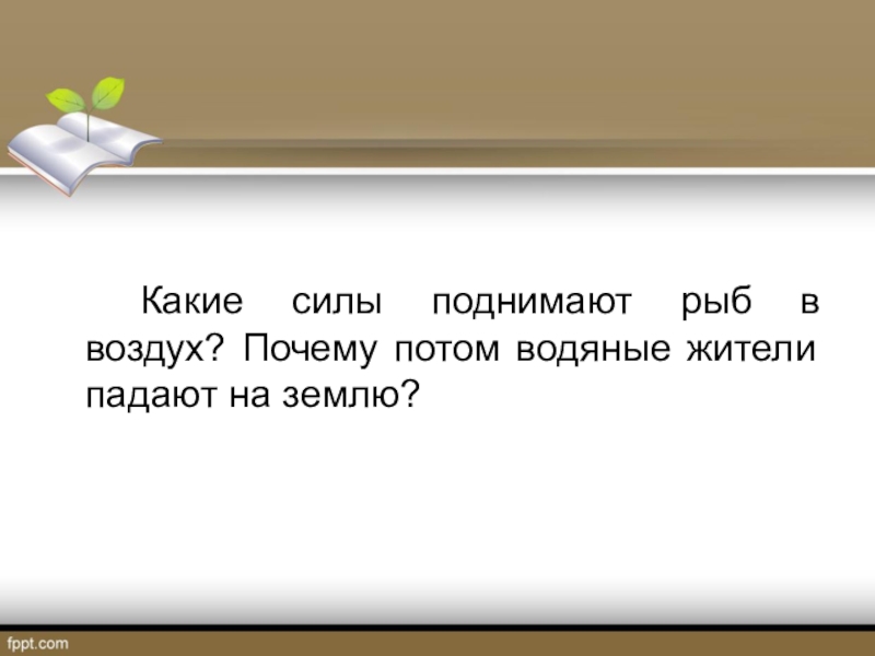 Слайд 11 Какие силы поднимают рыб в воздух? Почему потом водяные жители падают