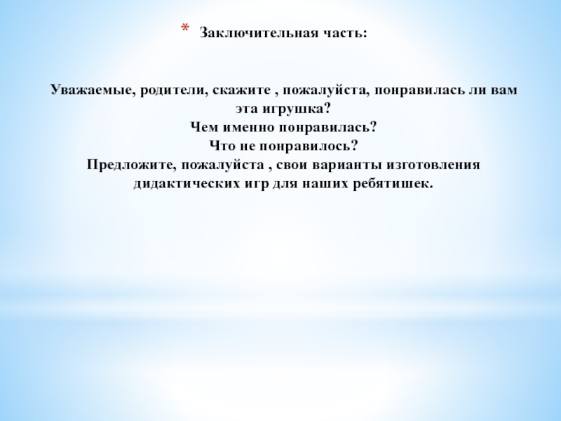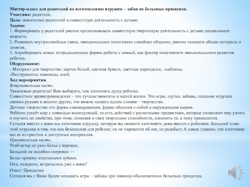 Конспект мастер – класса для родителей по изготовлению игрушек - забав для детей младшего возраста