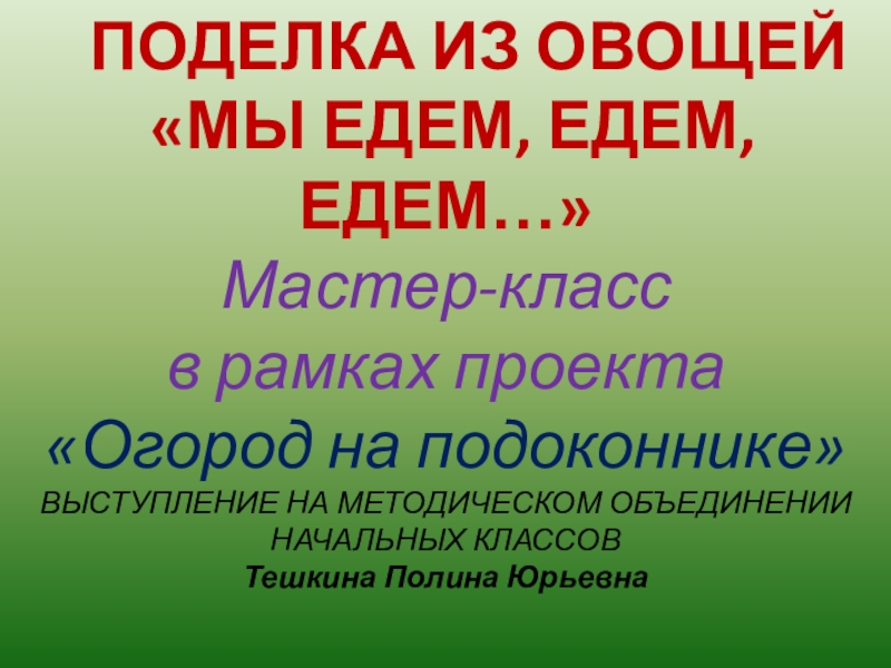 ВЫСТУПЛЕНИЕ НА МЕТОДИЧЕСКОМ ОБЪЕДИНЕНИИ НАЧАЛЬНЫХ КЛАССОВ