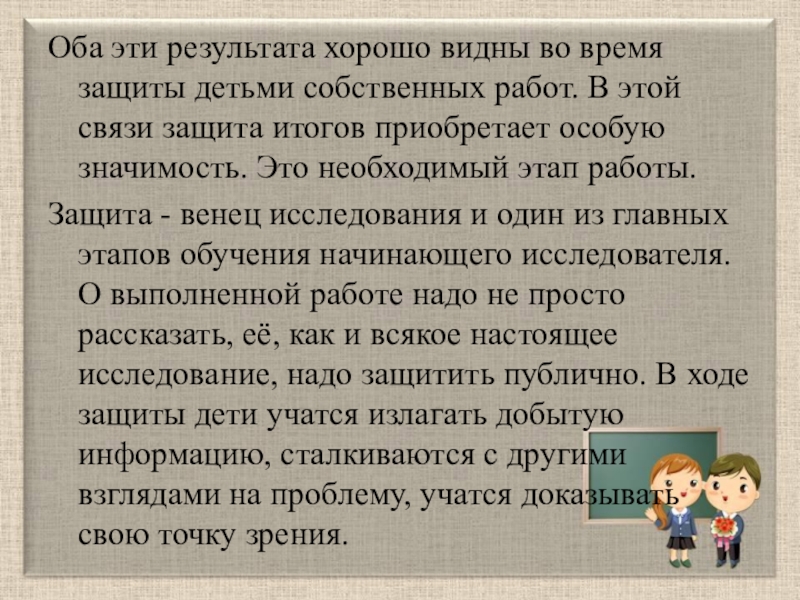 Слайд 29Оба эти результата хорошо видны во время защиты детьми собственных работ.