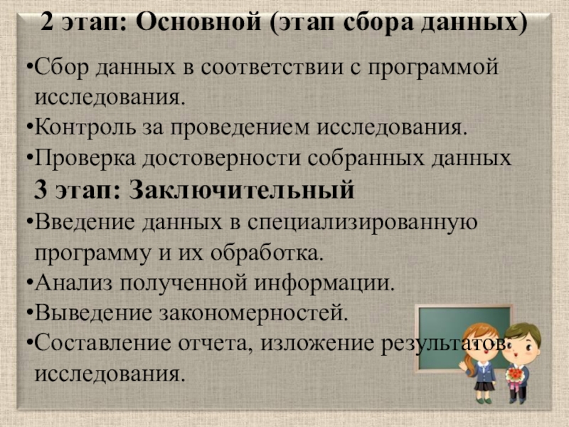 Разработка программы этапа исследования (где, когда, в каком объеме будут собираться данные, график работы, схема контроля за проведением исследования).
