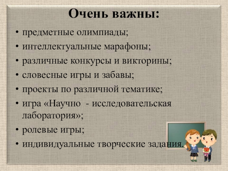 У одарённых детей чётко проявляется потребность в исследовательской и поисковой активности – это одно из условий, которое позволяет учащимся погрузиться в творческий процесс обучения и воспитывает в нём жажду знаний, стремление к открытиям, активному умственному труду, самопознанию.