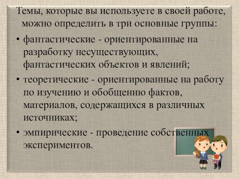Слайд 24Темы, которые вы используете в своей работе, можно определить в три