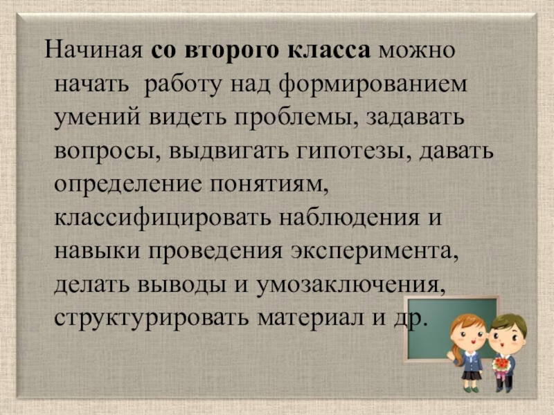 Слайд 16 Начиная со второго класса можно начать работу над формированием умений
