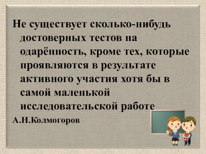 Слайд 11Не существует сколько-нибудь достоверных тестов на одарённость, кроме тех, которые проявляются