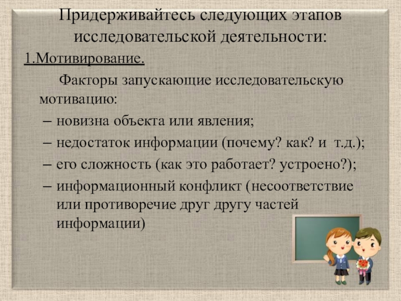 Слайд 22Придерживайтесь следующих этапов исследовательской деятельности: