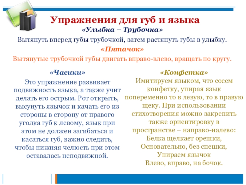 Вытянутые трубочкой губы двигать вправо-влево, вращать по кругу.