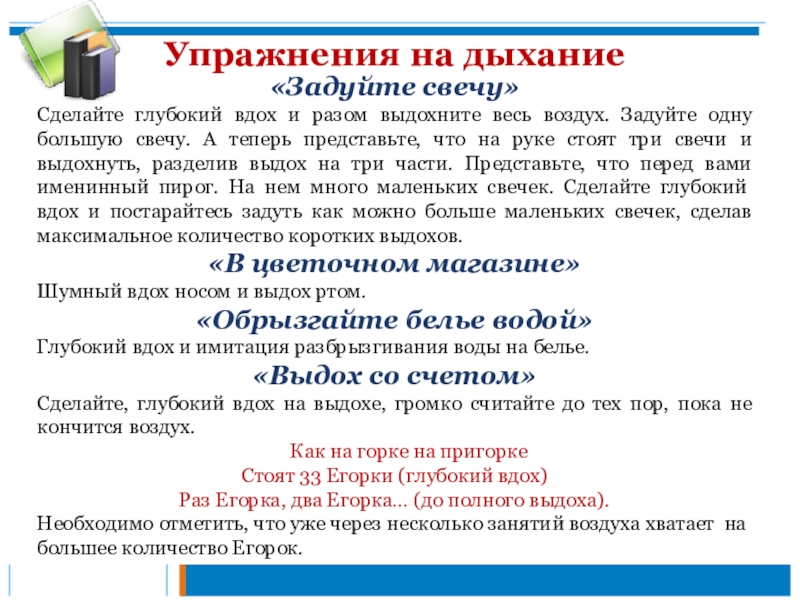 на дыхание,