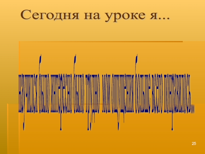 Сегодня на уроке я... научился было интересно было трудно мои ощущения больше всего понравилось...