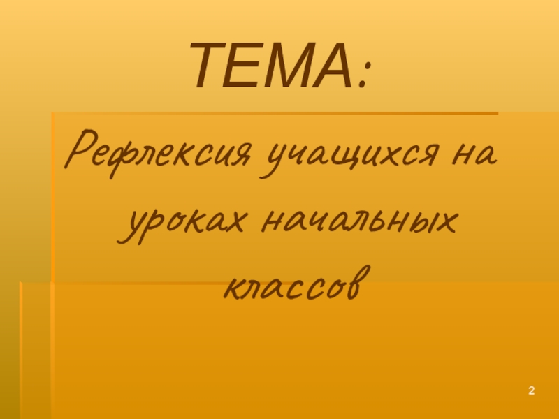 ТЕМА:Рефлексия учащихся на уроках начальных классов