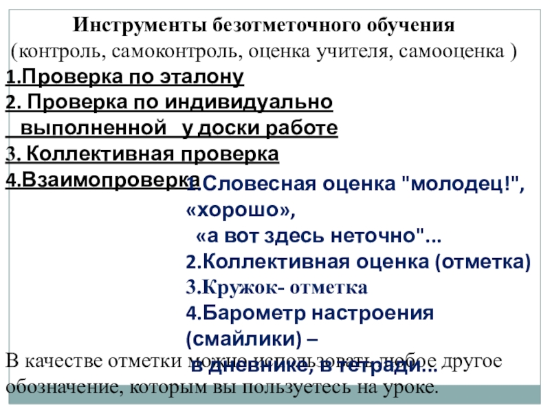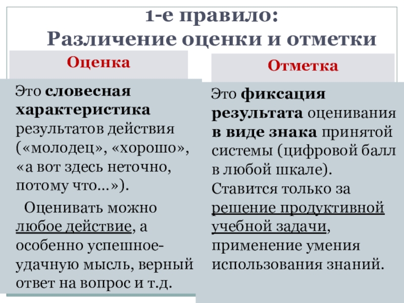 Это фиксация результата оценивания в виде знака принятой системы (цифровой балл в любой шкале). Ставится только за решение продуктивной учебной задачи, применение умения использования знаний.