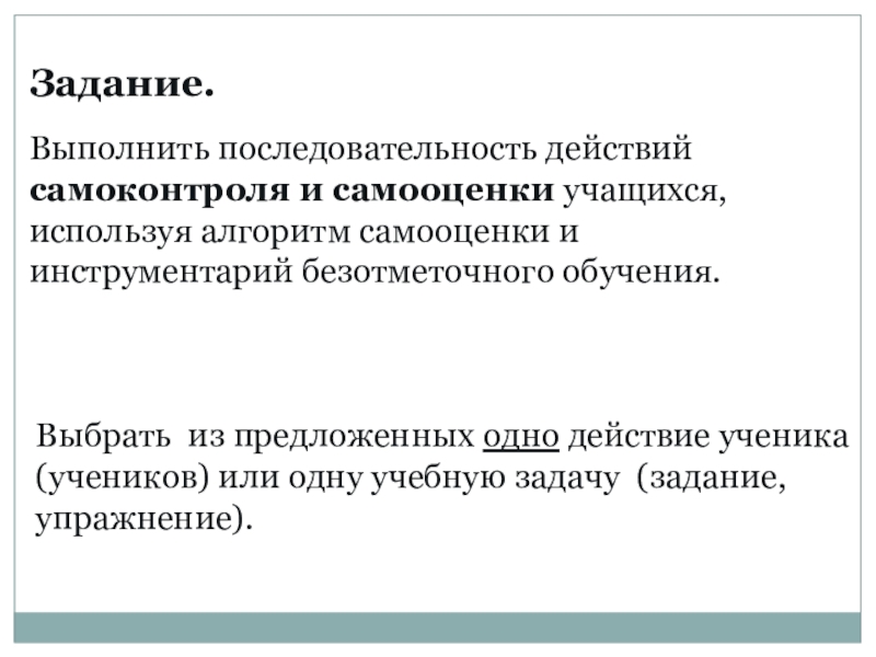 Выбрать из предложенных одно действие ученика (учеников) или одну учебную задачу (задание, упражнение).