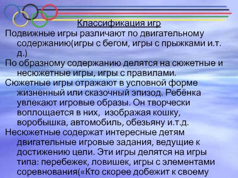 Подвижные игры различают по двигательному содержанию(игры с бегом, игры с