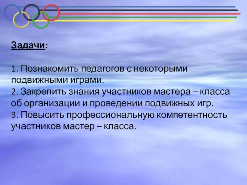 1. Познакомить педагогов с некоторыми подвижными играми.