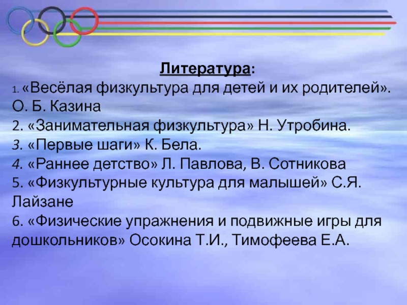 1. «Весёлая физкультура для детей и их родителей». О. Б. Казина