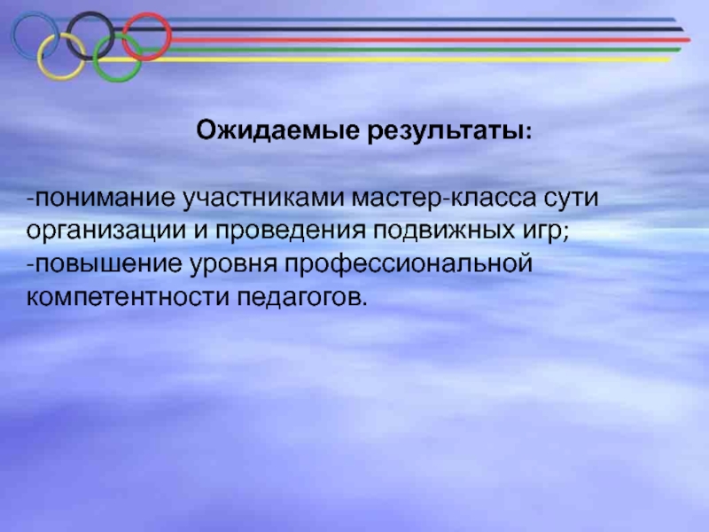-понимание участниками мастер-класса сути организации и проведения подвижных игр;