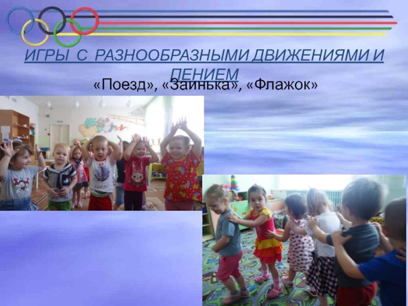 Слайд 19ИГРЫ С РАЗНООБРАЗНЫМИ ДВИЖЕНИЯМИ И ПЕНИЕМ
