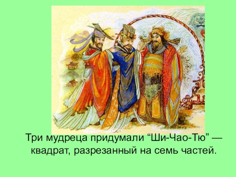 Слайд 9Три мудреца придумали “Ши-Чао-Тю” — квадрат, разрезанный на семь частей.