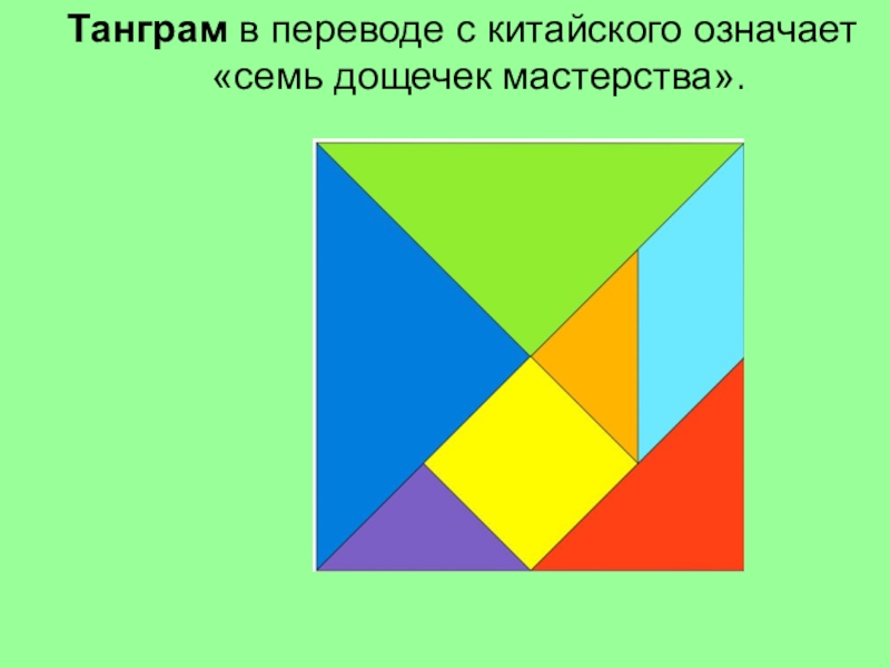 Слайд 5Танграм в переводе с китайского означает «семь дощечек мастерства».