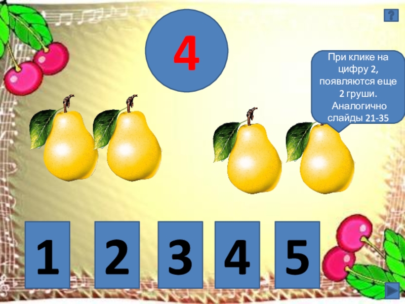 Если к одной груше добавить еще одну. Сколько груш получится? Покажи цифру.
