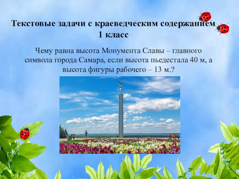 Слайд 5Текстовые задачи с краеведческим содержанием 1 класс
