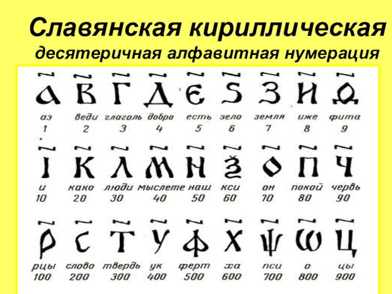 Слайд 3Славянская кириллическая десятеричная алфавитная нумерация