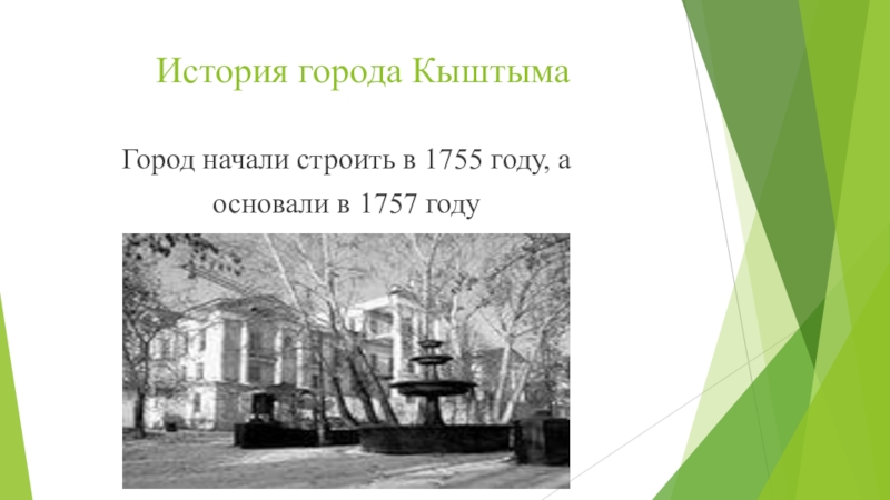 История города КыштымаГород начали строить в 1755 году, аосновали в 1757 году