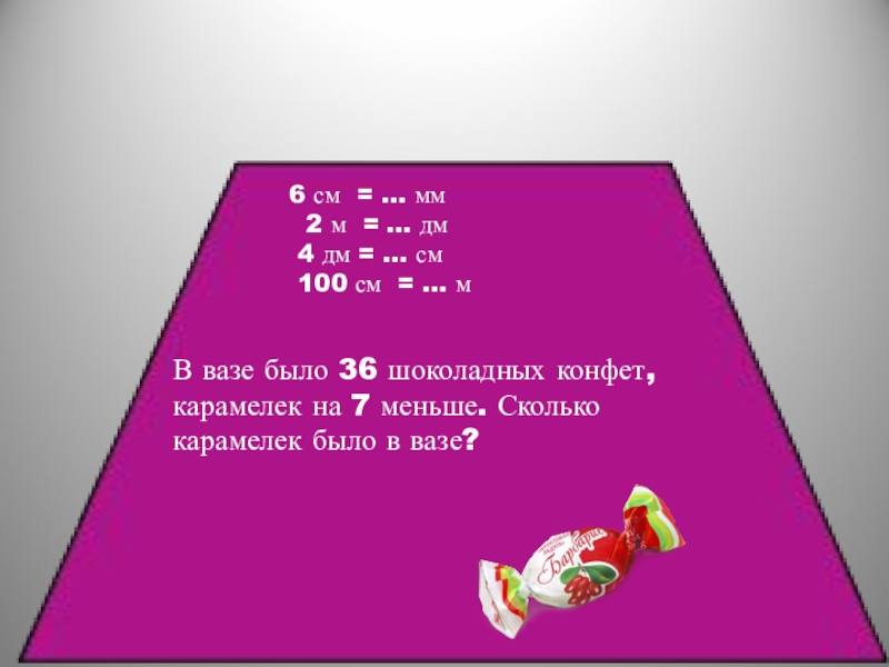 В вазе было 36 шоколадных конфет, карамелек на 7 меньше. Сколько карамелек было в вазе?