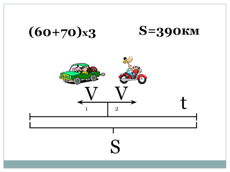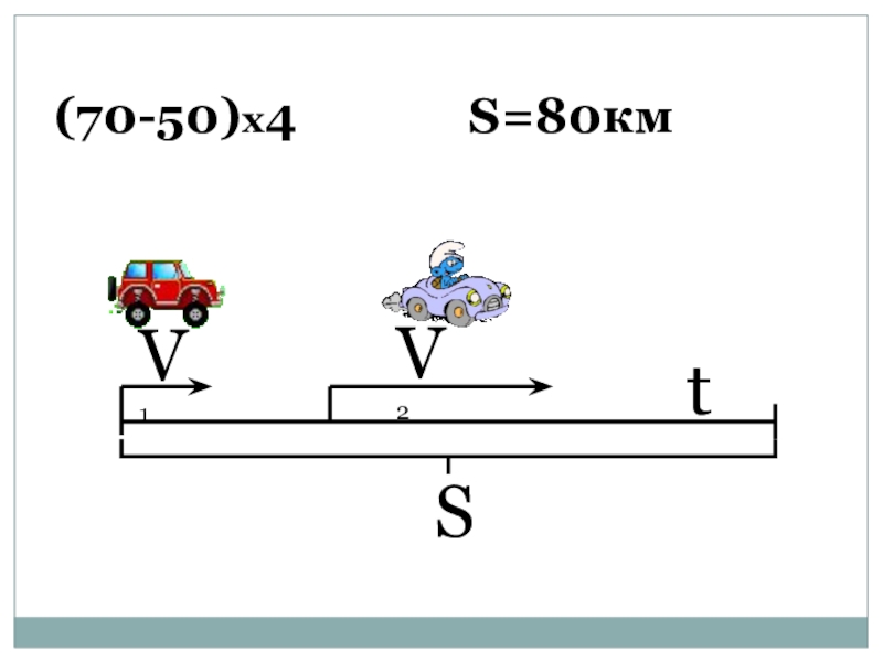 S = ( V1 – V2 ) tV1V2St(70-50)х 3S=60км