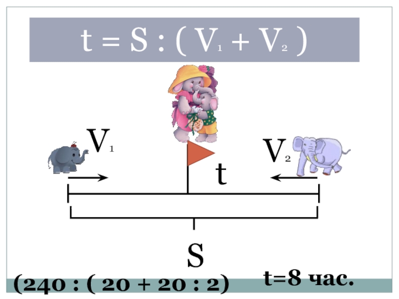 50 км/ч2 часа5 км/ч? час? кмS = V1   t1   t2 = S :
