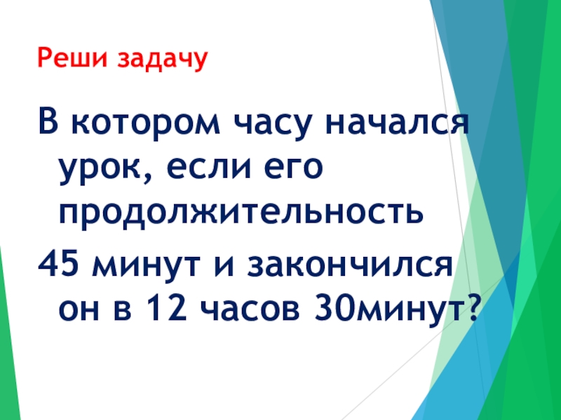 Реши задачуВ котором часу начался урок, если его продолжительность 45 минут и закончился он в 12 часов