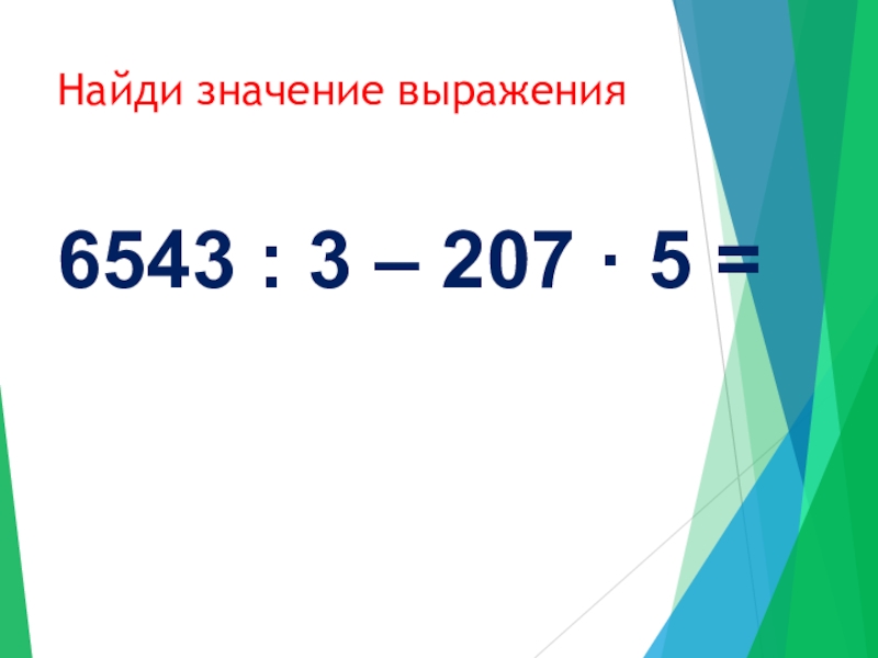 Найди значение выражения6543 : 3 – 207 · 5 =