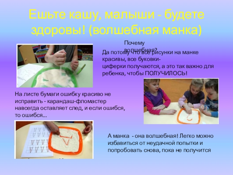 А манка - она волшебная! Легко можно избавиться от неудачной попытки и попробовать снова, пока не получится