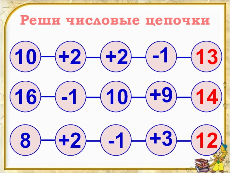 Слайд 5Реши числовые цепочки