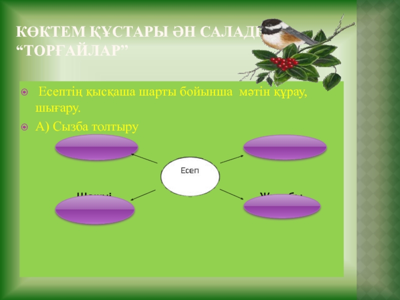 ЕСЕПТІҢ ҚЫСҚАША ШАРТЫ БОЙЫНША МӘТІН ҚҰРАУ.