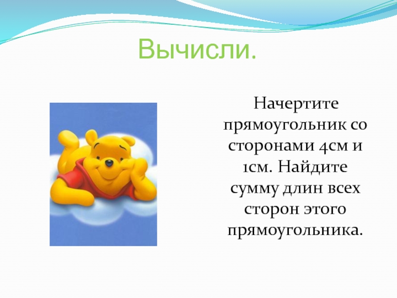 Вычисли.  Начертите прямоугольник со сторонами 4см и 1см. Найдите сумму длин всех сторон этого прямоугольника.