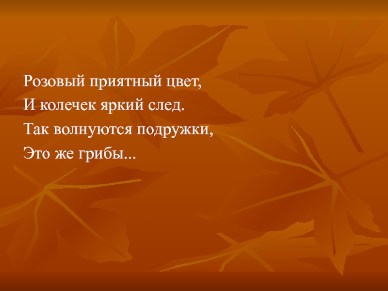 Розовый приятный цвет,И колечек яркий след.Так волнуются подружки,Это же грибы...